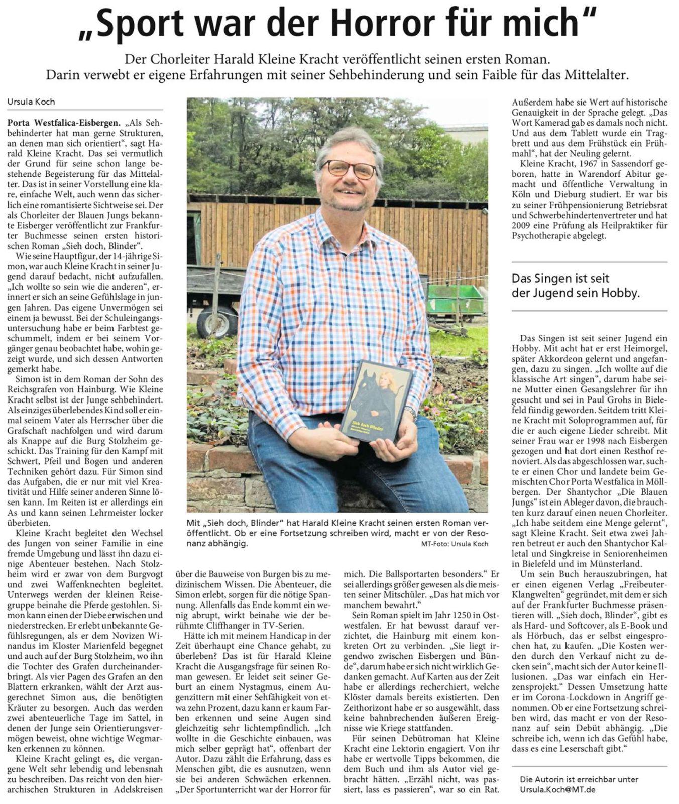 Der Roman mit dem Arbeitstitel »Sieh doch Blinder« spielt im Jahr 1250 im nördlichen Ostfalen und begleitet mit großem Einfühlungsvermögen und Humor den sehbehinderten Reichsgrafensohn Simon auf seinem mit kleinen und großen Abenteuern und Herausforderungen gespickten Weg durch das Erwachsenwerden und die Welt aus Pflicht und Verantwortung.
